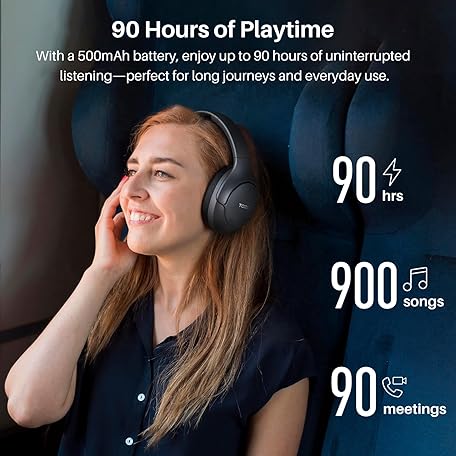TOZO HT3 Hybrid Noise Cancelling Headphones, 90H Playtime Wireless Over Ear Bluetooth Headset, Spatial Audio AI Chat with 5 Mics, Supports Dual Connection and USB-C Input, with 32 EQ Music Modes