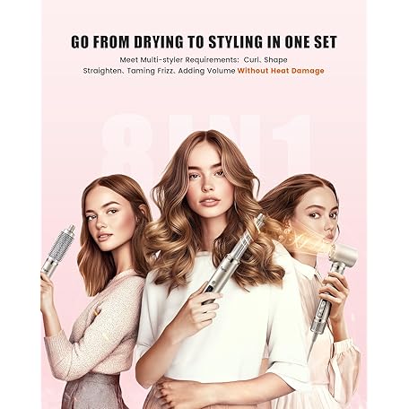 Thông tin sản phẩm Tqcir 8-in-1 Professional Hot Air Styler&Hair Dryer Brush, Powerful Multi-Styler with Auto-Wrap Curler with Storage Case, Fast Drying Curling Straightening Volumizing Without Heat Damage(Gold)