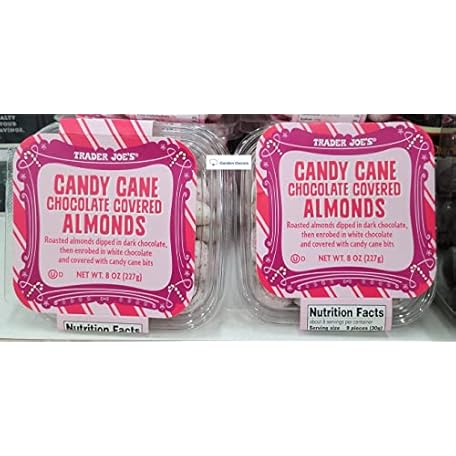 • Trader Joe’s Candy Cane Chocolate Covered Almonds 8oz 227g (Two Tubs)