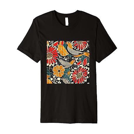 Traditional Ethnic & Botanical Art Indonesian Batik Birds And Flowers Premium T-Shirt