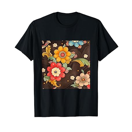 Traditional Ethnic & Botanical Design Indonesian Batik Floral Art T-Shirt