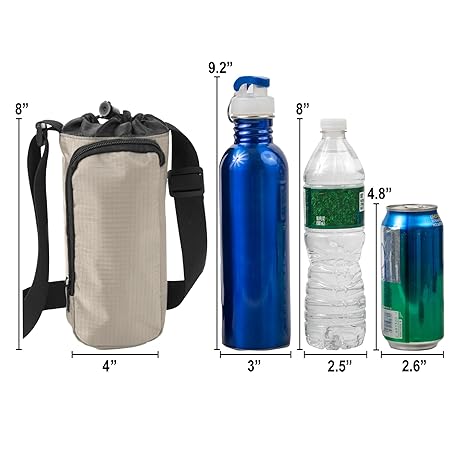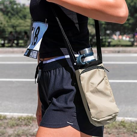 Trail maker Water Bottle Carrier Bag with Strap, Phone Pocket for Walking, Runs, Bike, Stainless Steel, Glass, Plastic