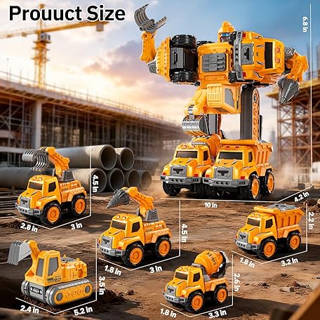 Transform Toys for Boys 4-6, 5 in 1 Take Apart Toys for Boys 3-5, Construction Excavator Transform Assembling Robot Toy for Kids, Educational Birthday Gift for 4 5 6 7 8 Year Old Boy Girls
