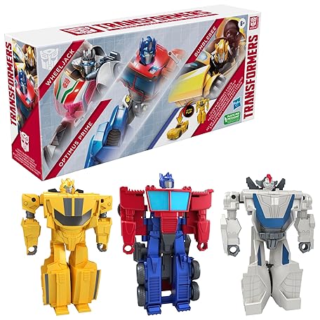 Thông tin sản phẩm Transformers 1-Step Flip Heroes 3-Pack, 4-Inch Wheeljack, Bumblebee, and Optimus Prime Action Figures, Kids Easter Toys or Basket Stuffers, Age 6+