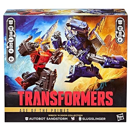 Transformers Age of The Primes Wreck 'n Doom Collection 2-Pack, 7.5-Inch Autobot Sandstorm and 5.5-Inch Slugslinger Action Figures, Robot Toys, 8+ (Amazon Exclusive)