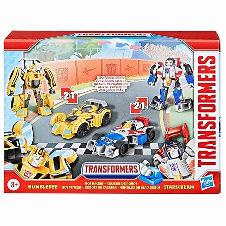Thông tin sản phẩm Transformers Bumblebee and Starscream Bot Racers, Easy to Change from Robot to Car Toys, Action Figures for Boys and Girls, Kids Christmas Stocking Stuffers, Ages 3+ (Amazon Exclusive)