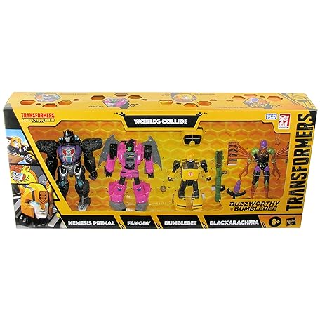Transformers Buzzworthy Bumblebee - War for Cybertron Worlds Collide 4-Pack with Nemesis Primal, Fangry, Bumblebee, and Blackarachnia