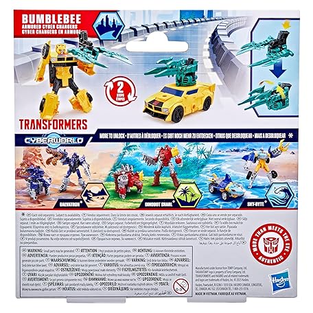 Transformers CYBERWORLD Bumblebee Armored Cyber Changers 4-Inch Action Figure, Quick Change to Car Mode, Robot Toys for Boys and Girls, Kids Christmas Stocking Stuffers, Ages 6+