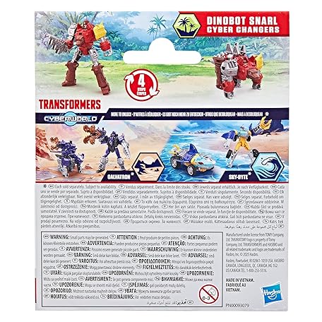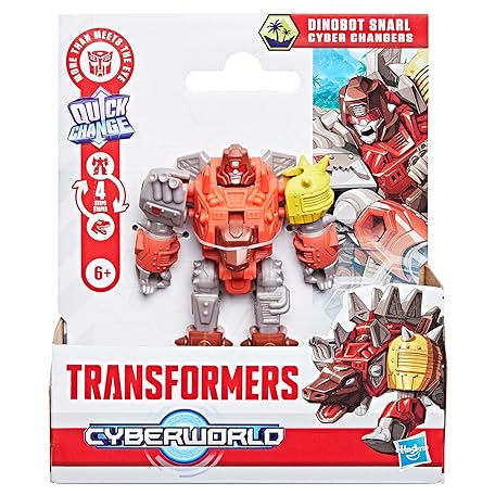 Transformers CYBERWORLD Dinobot Snarl Cyber Changers 4-Inch Action Figure, Quick Change to Dino Mode, Robot Toys for Boys and Girls, Kids Christmas Stocking Stuffers, Ages 6+