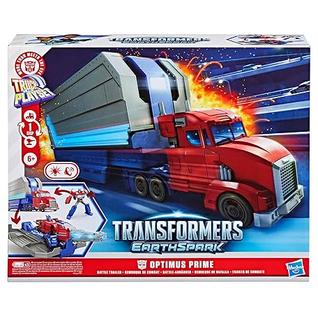Thông tin sản phẩm Transformers EarthSpark Optimus Prime Battle Trailer Playset with Action Figure, Lights and Sounds, Electronic Truck Toys for Kids 6 and Up