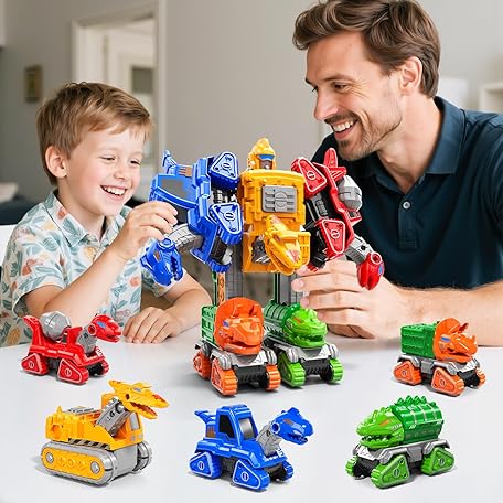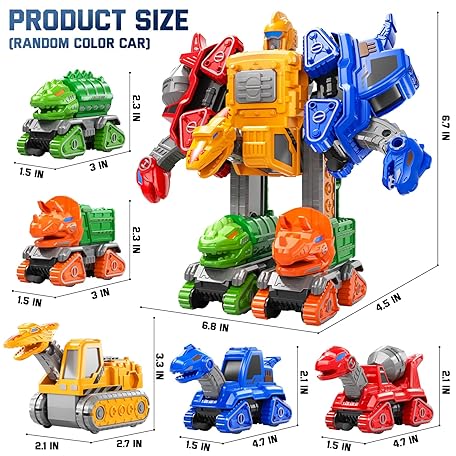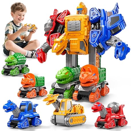 Thông tin sản phẩm Transforming Robot Toys Set Construction Trucks, Dinosaur Vehicles 5 in 1 Transform Robot For Kids Ages 5-7, Educational STEM Building Toy Cars, Christmas Birthday Gifts for Boys 3 4 5 6 7 8 Years Old