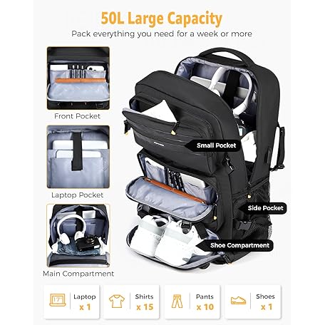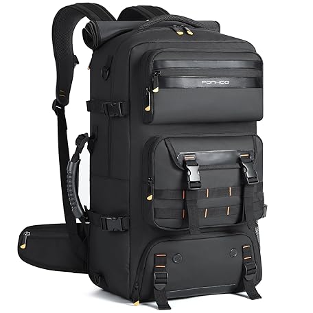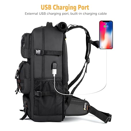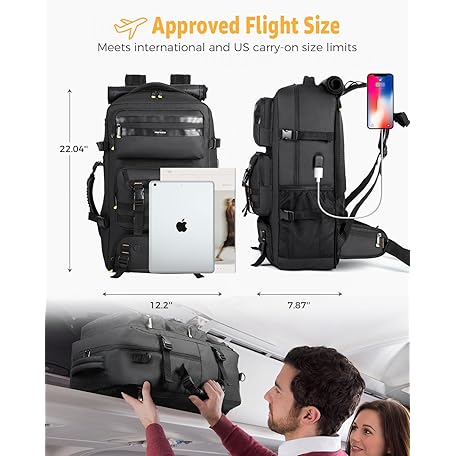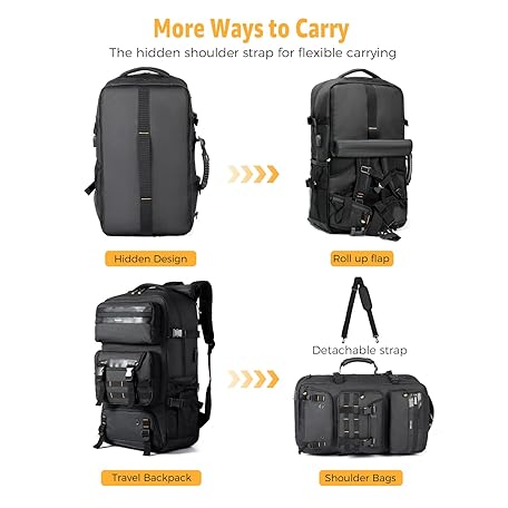 Travel Backpack for Men, 50L Carry On Flight Approved Convertible Duffle Bag with Shoe Compartment, 17 inch Laptop Luggage with USB Charging Port for Weekender Hiking, Black