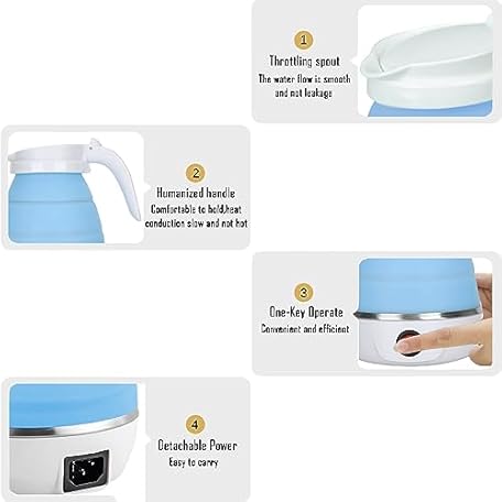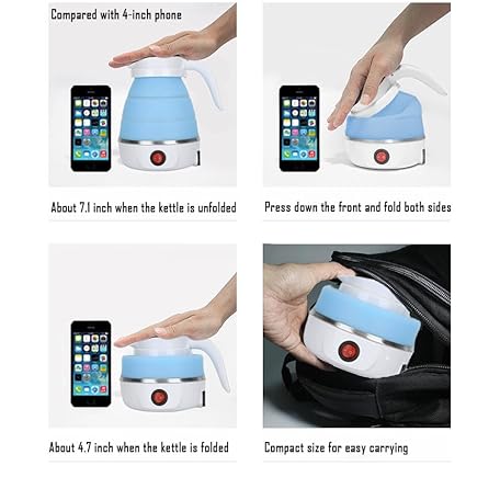 Thông tin sản phẩm Travel Kettle Electric Small Foldable Portable Kettle,Silicone Collapsible Heating Water Boiler Tea Pot for Camping,Easy for Storage with Separable Power Cord (Blue pro)