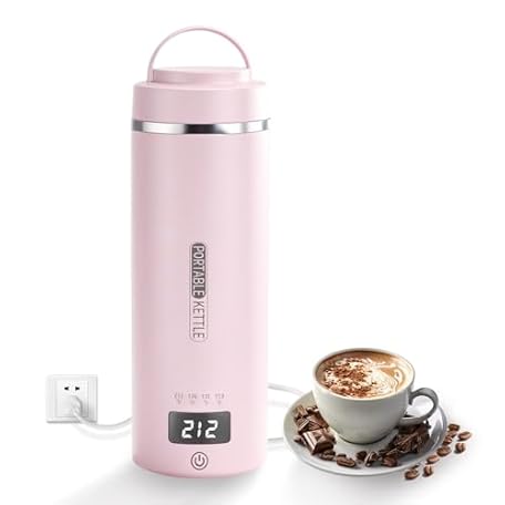 Travel Kettle Portable Electric Kettle with Plug-in Boiling & Keeps Warm via USB, Portable Water Boiler with 4 Temperature Settings, 304 Stainless Steel with Auto Shut-off 16oz(Pink)