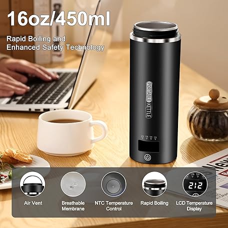 Travel Kettle Small Tea Kettle Coffee Mini Portable Electric Kettle with 4 Temperature Settings, Plug in 304 Stainless Steel Mini Travel Electric Kettle with Auto Shut-off(Black)