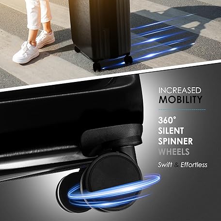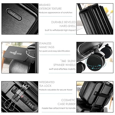 Thông tin sản phẩm TRAVELARIM 22 Inch Carry On Luggage 22x14x9 Airline Approved, Carry On Suitcase with Wheels, Hard-shell Carry-on Luggage, Durable Luggage Carry-On, Jet Black Small Suitcase with Cosmetic Case