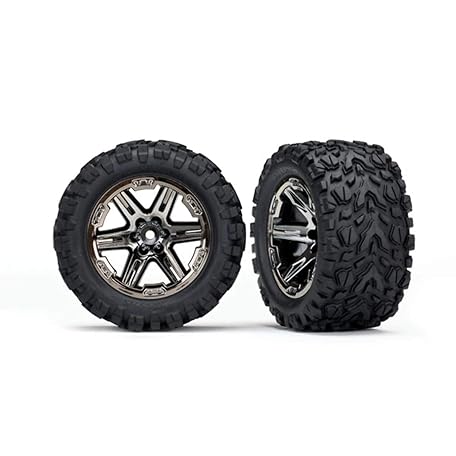 Thông tin sản phẩm Traxxas 6773X - Rustler 4x4 Tires & Wheels,Unisex Assembled, glued (2.8') (RXT Black Chrome Wheels, Talon Extreme Tires, Foam Inserts) (2) (TSM Rated)