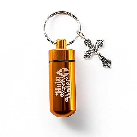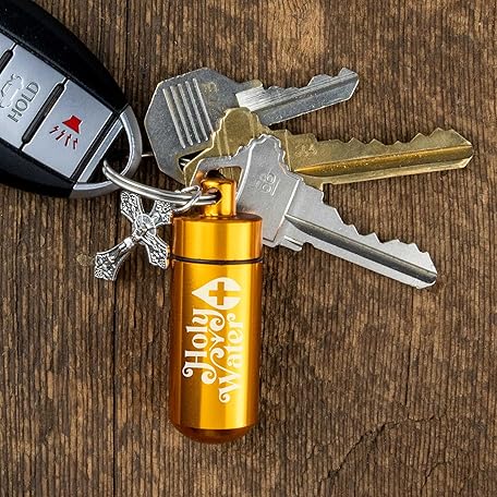 TREE OF LIFE REV. 22:14 Catholic Holy Water Bottle, Gold Keychain Container Kit with Plastic Eyedropper & Glass Vial