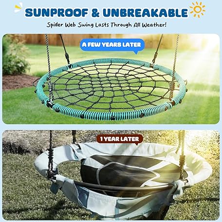 Sản phẩm Trekassy 750lbs 40" Spider Web Saucer Tree Swing for Kids Adults, Outdoor Net Swing with Steel Frame and 2 Hanging Straps-Green đang được bán với giá ưu đãi là $61.0291 tại nước Mỹ.