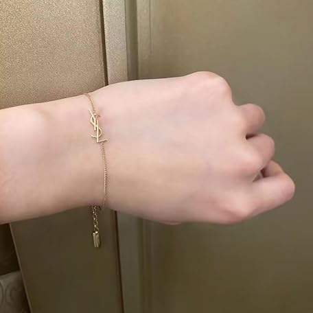 • Trendy Gold Chain Initial Bracelet for Women, Minimalist Designer Gold Link Bracelet for Jewelry Gift