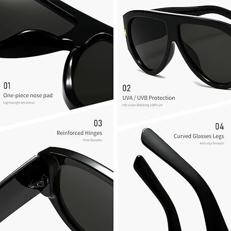 • Trendy Oversized Aviator Sunglasses for Women Men Square Thick Frame Large Sun Glasses UV400 Protection