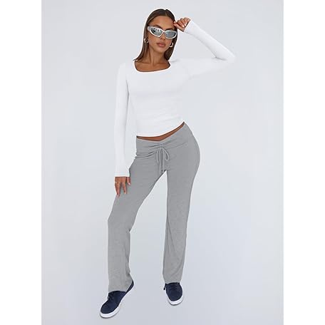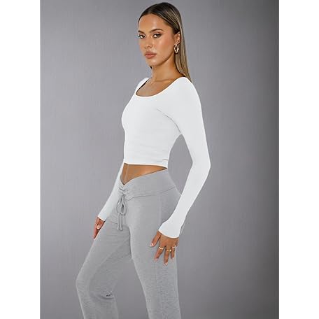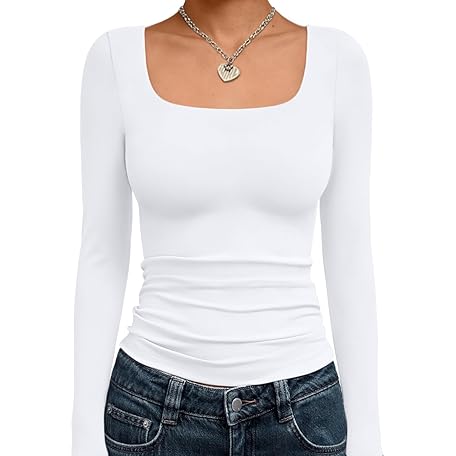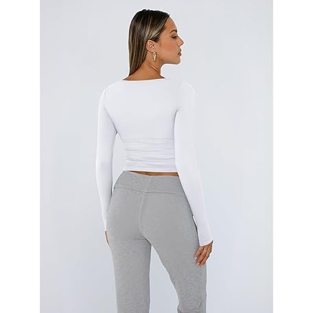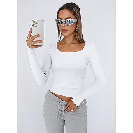 Trendy Queen Womens Long Sleeve Shirts Crop Tops Fall Fashion 2025 Square Neck Going Out Basics Tees Y2k Clothes