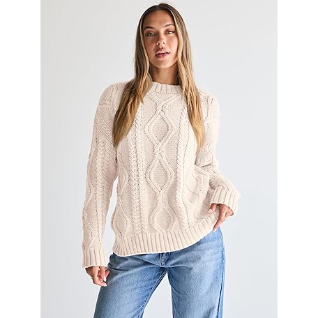 • Trendy Queen Women's Oversized Cable Knit Crewneck Sweaters