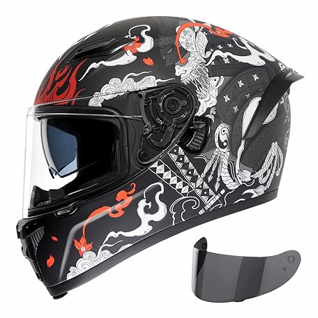TRIANGLE Motorcycle Helmets Full face Helmet for Adults Men and Women Dual Visor with Internal Sunshield DOT Approved (Matte Black White, Large)