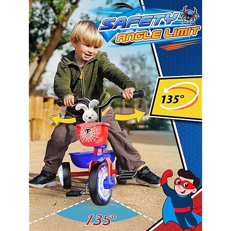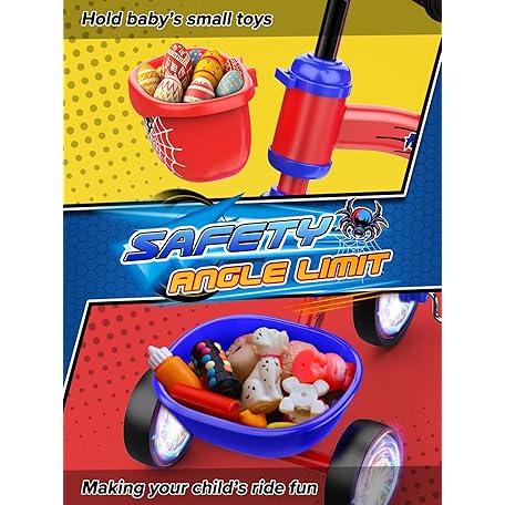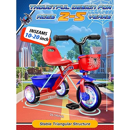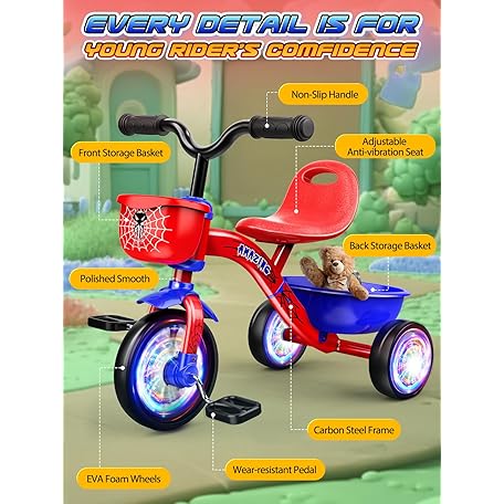 Thông tin sản phẩm Tricycle for Toddlers 1-3 3-5 Year Olds, Spider Toddler Bike Baby Balance Bike with Colorful Lighting Wheels & Large Basket, Birthday Gift and Toy for 1 2 3 4 5 Year Olds Boys and Girls