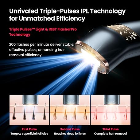 Thông tin sản phẩm TRIPLE-Pulse IPL Laser Hair Removal, Comfort Sapphire 37°F Ice-Cooling Contact Hair Removal Device for Women and Men, Effective, Permanent Hair Removal at Home, Trinity iGlow 10 (Navy Blue)