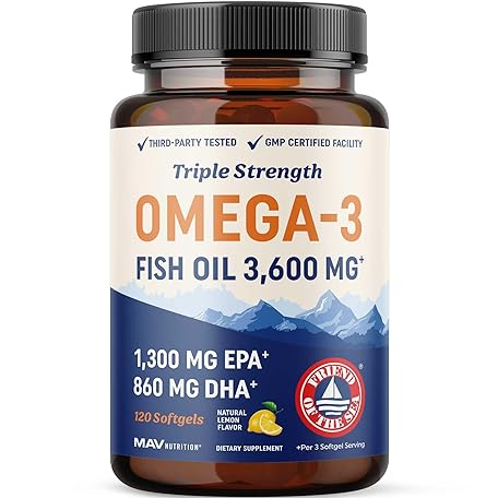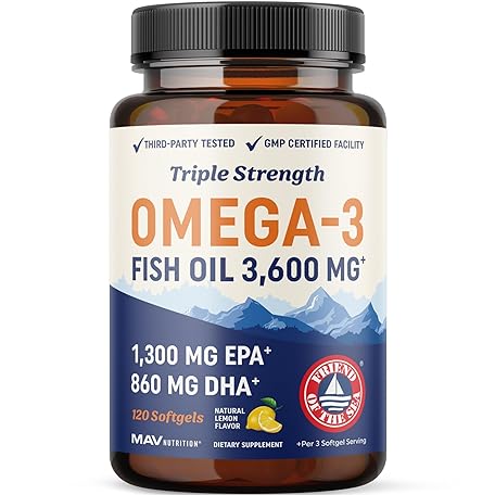 Thương hiệu MAV NUTRITION là cái tên nổi tiếng được rất nhiều khách hàng trên thế giới chọn lựa. Với kiểu dáng đẹp mắt, sang trọng, sản phẩm Triple Strength DHA Omega 3 Fish Oil 3600 mg | Over 2100mg Omega-3 Fatty Acids with 860mg of DHA | 1300mg EPA | Best Essential Fatty Acids | Premium Wild Caught & Burpless Fish Oil | 120 ct. là sự lựa chọn hoàn hảo nếu bạn đang tìm mua một món cho riêng mình.
