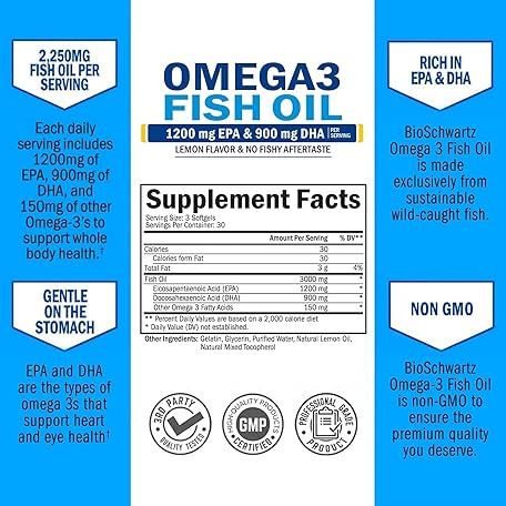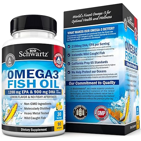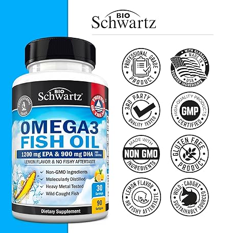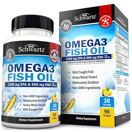 Thương hiệu BioSchwartz là cái tên nổi tiếng được rất nhiều khách hàng trên thế giới chọn lựa. Với kiểu dáng đẹp mắt, sang trọng, sản phẩm Triple Strength Omega 3 Fish Oil Supplement - 2250mg EPA DHA Omega 3 Fatty Acids from Fresh Wild Caught Fish, Burpless Lemon Flavor Formula Supports Eye Health and More, Gluten Free, 90 Softgels là sự lựa chọn hoàn hảo nếu bạn đang tìm mua một món cho riêng mình.