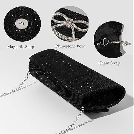 Trisapu Bow Evening Bag Sparkly Clutch Purses for Women Wedding Glitter Rhinestone Party Prom Purse Dressy Clutch Bags