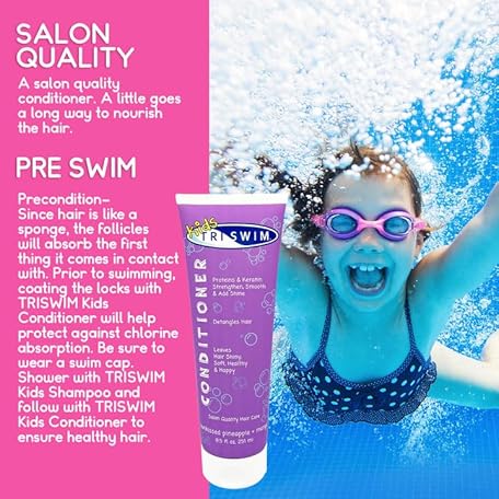 TRISWIM Kids Shampoo & Conditioner Set – 8.5oz Each | Removes Chlorine, Salt Water, Hard Water | Hydrates, Detangles, Restores | Helps Build Strong and Healthy Hair | For Everyday Use
