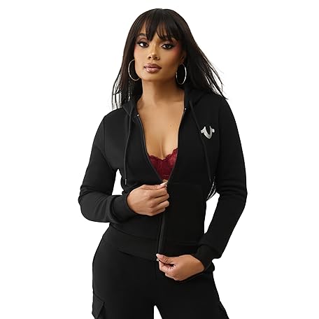 True Religion Buddha Banner Zip Up Hoodie for Women - Soft Cotton Blend, Drawstring Hooded Sweatshirt