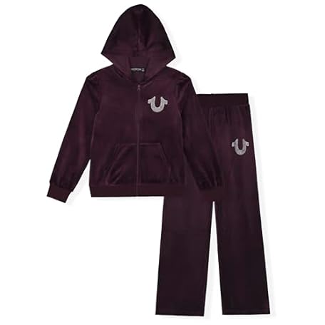 True Religion Girls Hoodie and Sweatpant Set Velour Jogger Sets for Girl Fashion Clothing