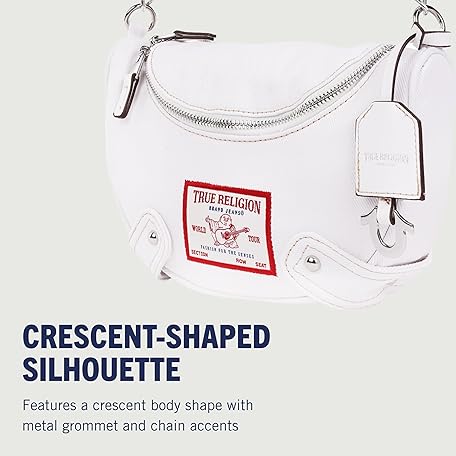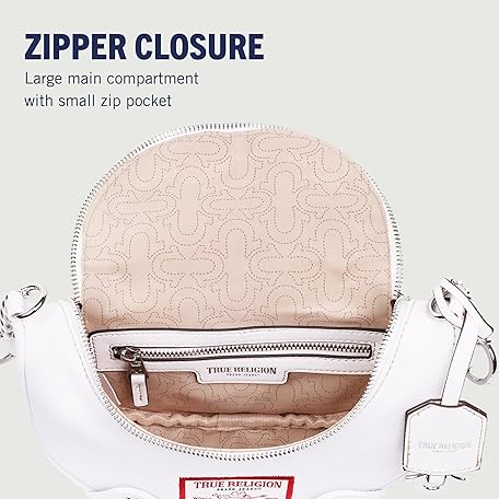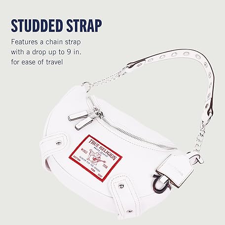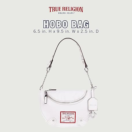 True Religion Hobo Bag, Women's Shoulder Handbag with Grommet Chain Strap, White