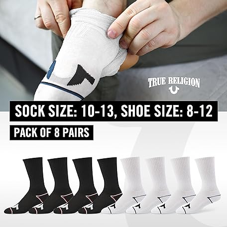 Sản phẩm True Religion Mens 8 Pairs Crew Socks for Men Premium Athletic Men's Socks, Shoe Size 8-12 đang được bán với giá ưu đãi là $12.0445 tại nước Mỹ.