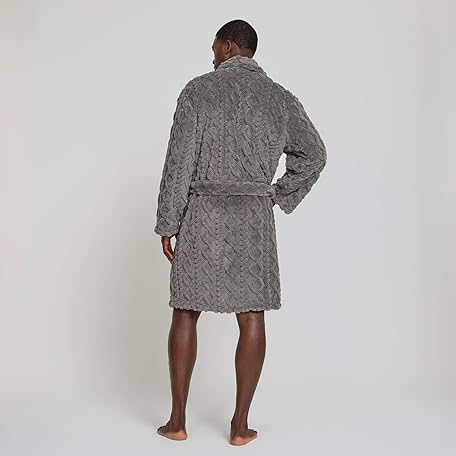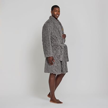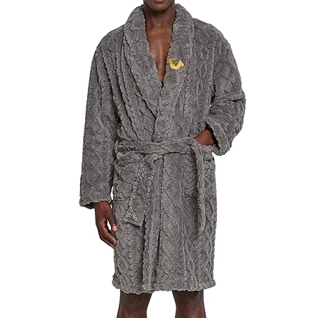 True Religion Mens Bath Robe for Men Soft Plush Shower Robe with Pockets and Tie Waist