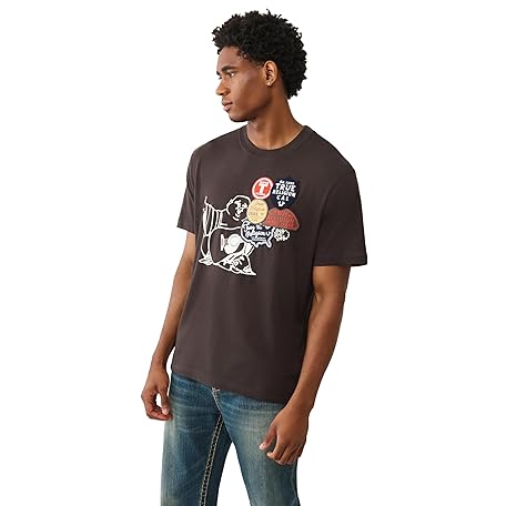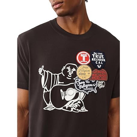 True Religion Men's Patch Buddha Tee – Short Sleeve Crewneck Graphic T-Shirt
