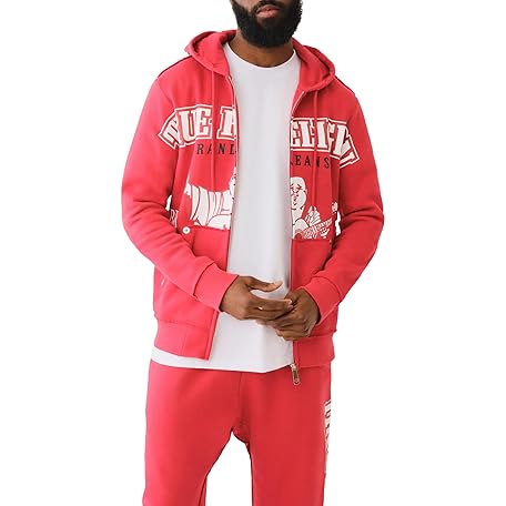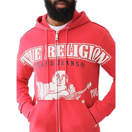 True Religion Men's Raw Exaggerated Icon Zip Up Hoodie