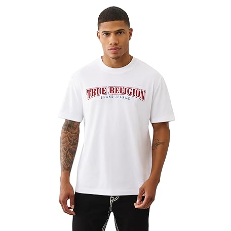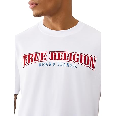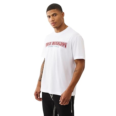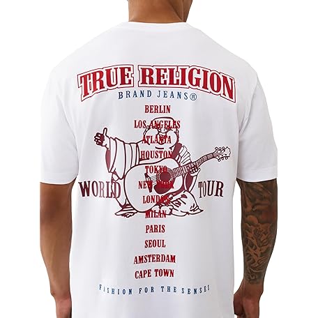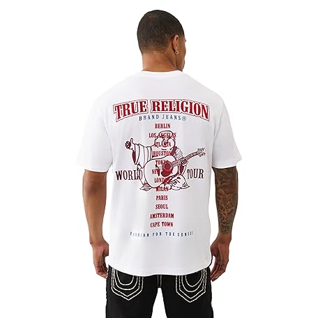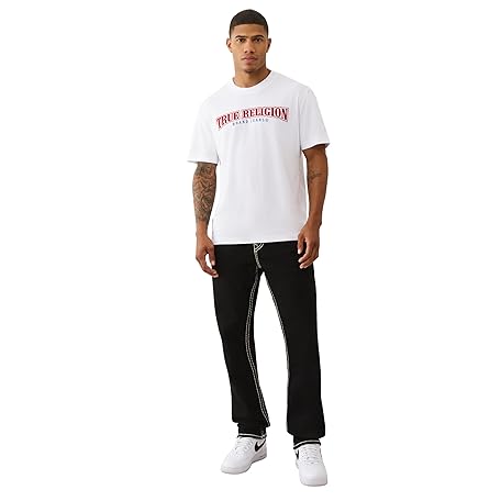 True Religion Men's Short Sleeve Flock Buddha Tee – Crewneck Graphic T-Shirt