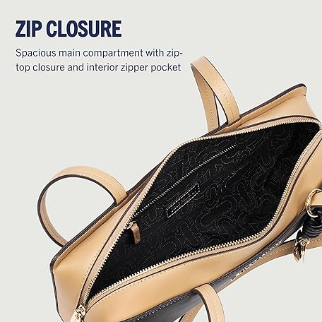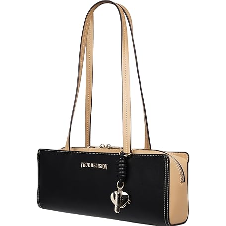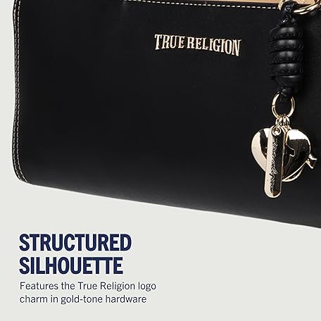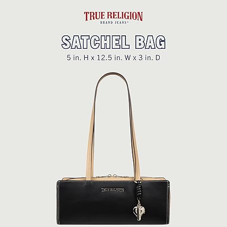Thông tin sản phẩm True Religion Satchel Bag, East/West Modern Structured Purse with Dual Shoulder Straps, Logo Charm and Gold Hardware, Camel