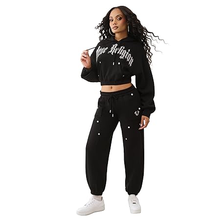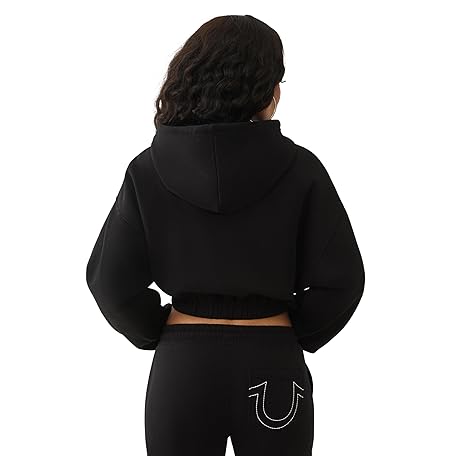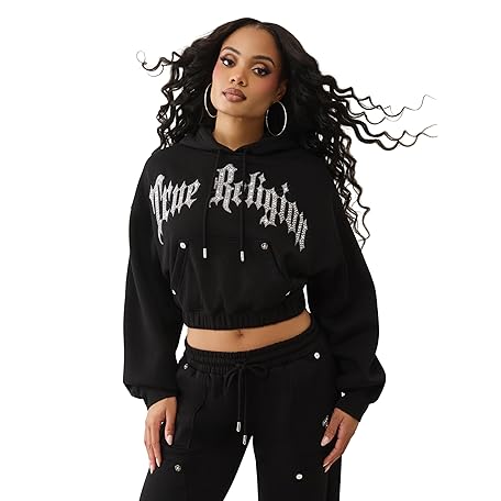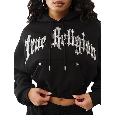 True Religion Studded GF Pullover Hoodie for Women - Fleece Cotton Blend, Cozy Fit, Logo Detail
