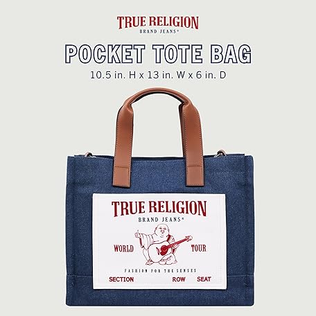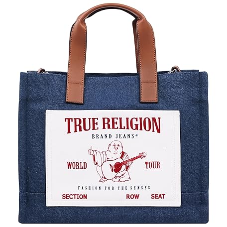 True Religion Tote Bag, Women's Medium Travel Handbag with Buddha Pocket and Adjustable Shoulder Strap