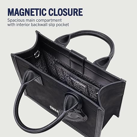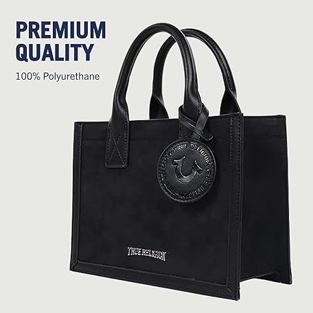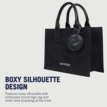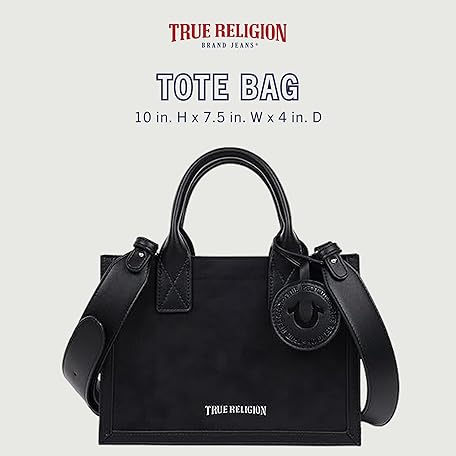 True Religion Unisex True Religion Suede Tote Bag, Women’s Structured Handbag With Adjustable Strap, Magnetic Snap Closure