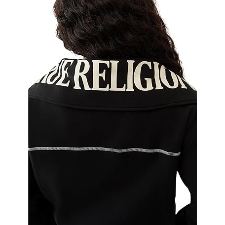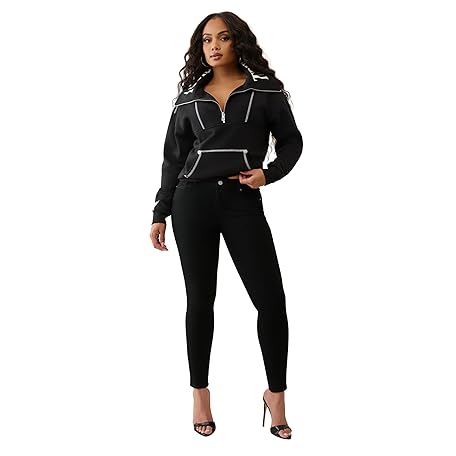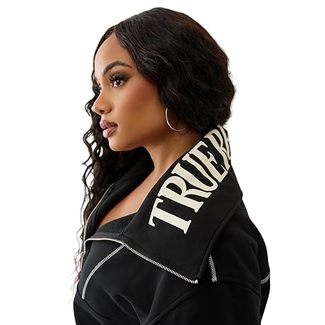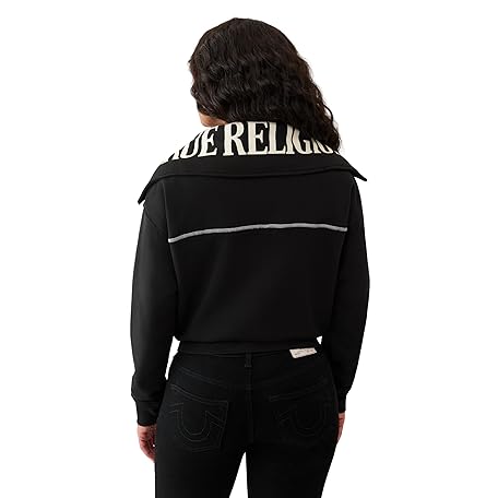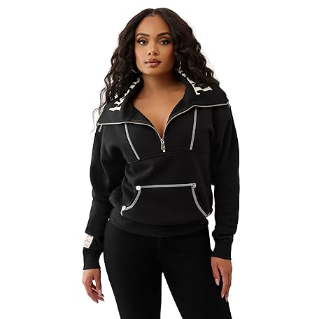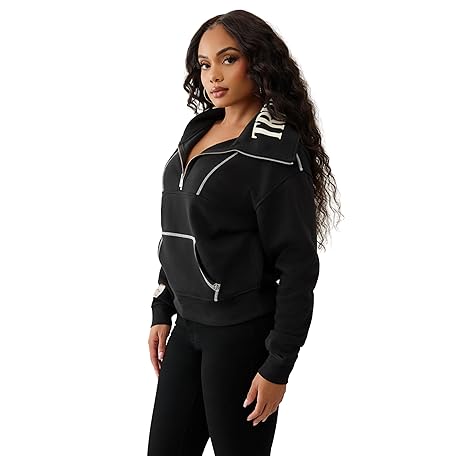 True Religion Women’s Contrast Stitch Half Zip Pullover – Fleece Sweatshirt with Quarter-Zip and Signature Stitching