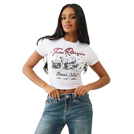 • True Religion Womens Crystal Buddha Ss Baby Tee