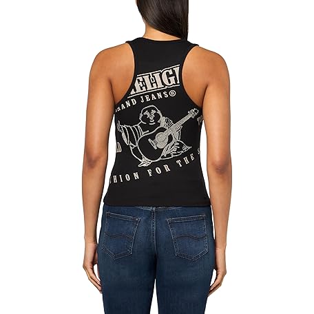 True Religion Women's Crystal Goddess Rib Tank Top