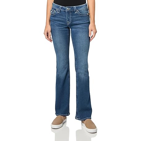 • True Religion Women's Crystal Wing Becca Mid Rise Boot Flap Jeans - Stylish Flap